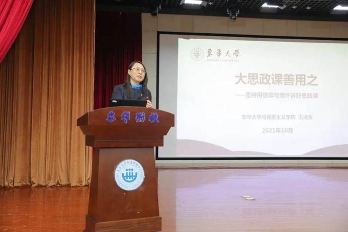 为深入贯彻落实全国教育大会、全国高校思想政治工作会议、学校思想政治理论课教师座谈会精神,推进习近平新时代中国特色社会主义思想铸魂育人,东华大学马克思主义学院积极发挥自身学科优势和师资优势,立足学校所在区域做好服务溢出,持续加强规划方案指导、教学资源开发和师资队伍培训,不断推进松江区大中小思政课一体化建设向纵深发展,切实增进立德树人成效。 推进大中小思政课一体化是一项系统工程,东华大学马克思主义学院充分发挥智库服务作用,多次参与松江区教育主管部门、高校、中小学等成员召开大中小思政课一体化建设专题推进研讨会,积极指导政策方案设计,相关建议获得松江区教育局采纳,参与《松江区大中小学思政课一体化建设三年行动方案(2021-2023年)》编制与推进落实,通过顶层设计完善促进思政课一体化建设落到实处。10月26日,在松江区深化“三全育人”综合改革暨大中小学思政课一体化建设工作推进展示活动中,松江区教育局聘任东华大学马克思主义学院为“松江区大中小思政课一体化建设工作指导单位”。王治东教授以“大思政课善用之——坚持用信仰与情怀讲好思政课”为题向与会思政课教师作学术报告,周德红老师作为大学教师代表向松江区各大中小学思政课教师进行了课堂教学展示,通过学术指导和示范带动促进各学段思政课教学水平提升。