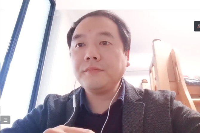 (陆未谷老师发言) 担任东华大学形势与政策课程的陆未谷老师介绍了“形势与政策”课的在线教学安排与推进方式。他认为,在线教学作为思政课程的重要教学方式,绝不是权宜之计。直播授课让教师显得更加平易近人,为了让讲课更有效果,教师会提升自己教学语言水平,用引人入胜导入性语言、发人深思的启发性语言、承接自然的过渡性语言和精当扼要的总结性语言来分析课程内容。由于隔着屏幕,又能使用文字,一些学生在没有了课堂教学的压迫感后显得更加愿意表达想法,这给了教师加强思想引领提供了很好的机会。