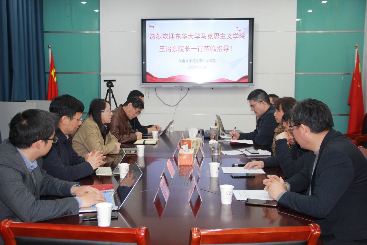 为深入贯彻落实党的二十大精神,推进马克思主义理论学科建设和思政课内涵式提升发展,324日,马克思主义学院院长王治东教授带队赴江南大学马克思主义学院进行考察学习。江南大学马克思主义学院党委书记李凤梅、院长侯勇、副院长潘加军以及刘焕明、唐忠宝两位教授出席座谈会,会议由李凤梅主持。