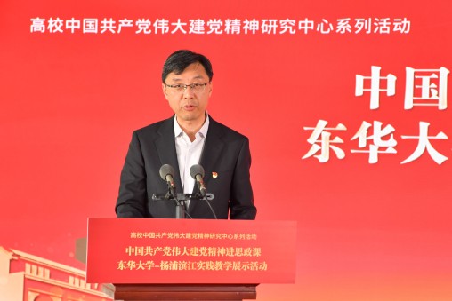5月10日,高校中国共产党伟大建党精神研究中心系列活动之“中国共产党伟大建党精神进思政课:东华大学——杨浦滨江实践教学展示活动”在杨浦滨江举行。上海市教育发展基金会理事长王荣华,杨浦区委书记、区长薛侃,上海市教卫工作党委副书记、市教委副主任闵辉,教育部直属高校主题教育第六巡回指导组组长赵忠、副组长谢守成,以及我校党委书记刘承功、党委副书记崔运花出席活动。上海市委宣传部、市教卫工作党委、市教委、杨浦区委区政府、市教育发展基金会,高校中国共产党伟大建党精神研究中心、《宣传通讯》编辑部相关负责同志、我校相关部门负责人和师生代表参加活动。活动由崔运花主持。