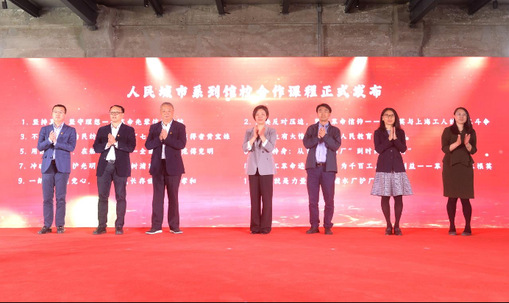 (上海市委宣传部宣传处处长王磊、杨浦区委宣传部常务副部长缪荣斌、上海市教卫工作党委宣传处副处长张晓飞、上海市教科院德育院党支部书记、副院长宗爱东、《上海宣传通讯》执行主编吕东卉、东华大学教务处处长杨旭东、东华大学马克思主义学院院长王治东,进行人民城市系列馆校合作课程清单发布) 活动现场,人民城市系列馆校合作课程清单首次发布。该课程由高校中国共产党伟大建党精神研究中心、东华大学、杨浦区委宣传部联合建设,作为高校率先开展伟大建党精神进课堂的实践,将通过深入挖掘杨浦丰富的红色文化资源,探索“区域+高校+中心”多方合作,强化共建共享,创新“思政课堂+社会课堂”双育人模式,打造新时代思政金课。课程涵盖“坚持真理 坚守理想——革命先辈信仰起航”“不忘初心‘为民纺丝’——‘七一勋章’获得者黄宝妹”“华丽转身:从百年‘棉厂’到时尚‘秀场’”等10个主题,引导青年学生们在新时代鲜活实践中学习理解当代中国马克思主义、学深悟透习近平新时代中国特色社会主义思想,为以中国式现代化全面推进中华民族伟大复兴积极贡献青春力量。