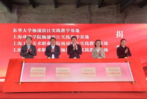 (杨浦区委常委、宣传部部长卢刚,东华大学党委副书记崔运花,上海工艺美术职业学院党委书记许涛,上海电影艺术职业学院党委副书记吕旻,上海戏剧学院马克思主义学院、人文社会科学部党支部书记施华东,为东华大学杨浦滨江实践教学基地、上海戏剧学院杨浦滨江实践教学基地、上海工艺美术职业学院杨浦滨江实践教学基地、上海电影艺术职业学院杨浦滨江实践教学基地成立揭牌) 活动现场,东华大学“中国共产党伟大建党精神进思政课研究中心”揭牌成立。东华大学发挥大思政课“手拉手”功能,联合上海戏剧学院、上海工艺美术职业技术学院、上海电影艺术职业学院揭牌成立杨浦滨江实践教学基地。 |