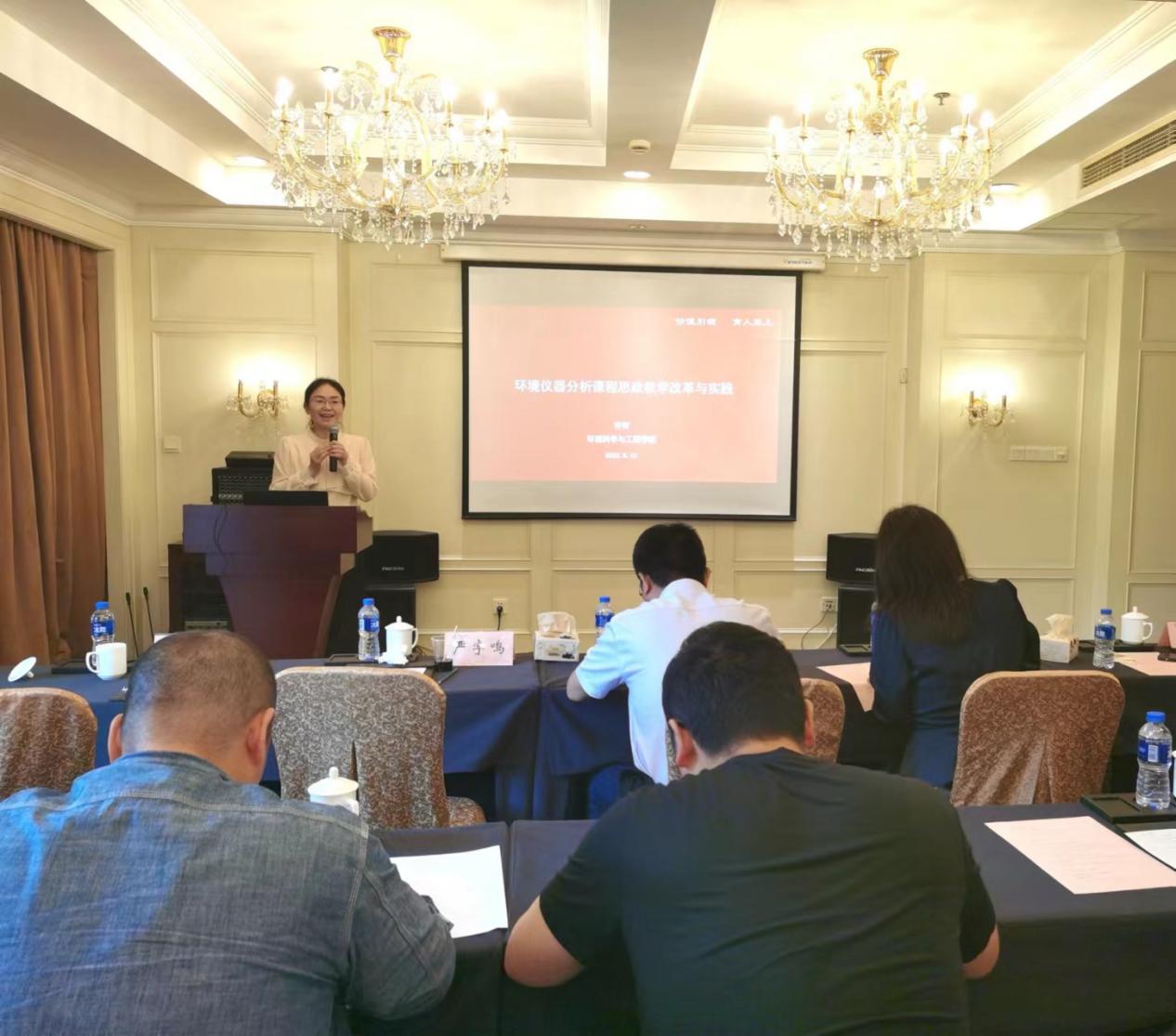 教育部课程思政教学名师、环境学院许贺副教授作《环境仪器分析课程思政教学改革与实践》报告,分享其“即小见大”的课程思政,生动呈现了“环境仪器分析”的建设思路、教学案例和教学效果。