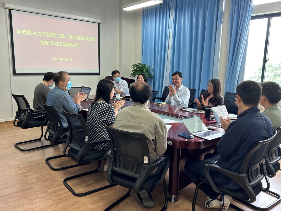 为推动学习贯彻习近平新时代中国特色社会主义思想主题教育走深走实,6月8日下午,马克思主义学院教工第二党支部召开专题学习交流研讨会,认真学习习近平总书记重要讲话精神,深刻领悟“以学增智”重要要求,学习运用浙江“千万工程”经验案例。党委书记刘承功出席并指导点评。学院党政班子成员、教工第二党支部党员参加研讨会,会议由党支部书记马欣主持。