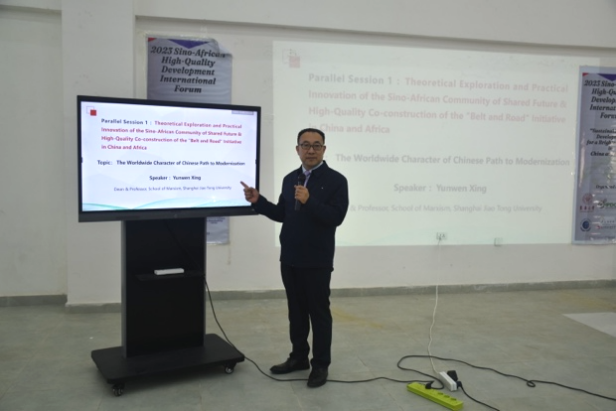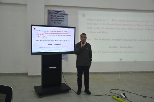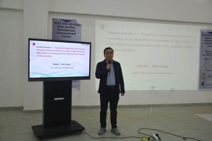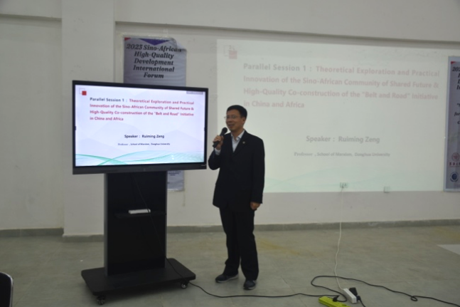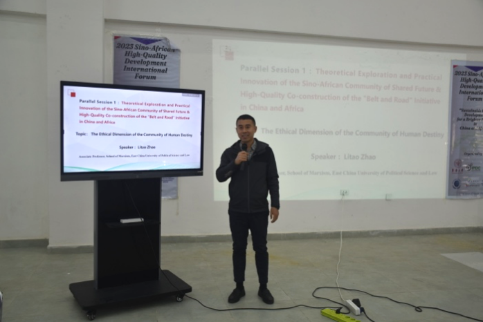 12月12日,由东华大学马克思主义学院主办的“中非命运共同体理论探索与实践创新”国际学术研讨会在埃塞俄比亚首都亚的斯亚贝巴Bole Lemi工业园召开。本次会议属于2023中非高质量发展国际论坛平行论坛之一。2023中非高质量发展国际论坛由东华大学、埃塞俄比亚巴赫达尔大学、埃塞俄比亚工业园区开发公司、联合国全球契约组织“一带一路”行动平台、中国(埃塞)纺织轻工企业可持续发展联盟联合主办,论坛的主题为“可持续绿色发展,共创中非美好未来”,包含一场主论坛及2个平行论坛。包括ETV、ebs、Arts等四家当地主流媒体对活动进行了直播报道。“上海交通大学马克思主义学院和华东政法大学马克思主义学院参与协办了本次“中非命运共同体理论探索与实践创新”国际学术研讨会。