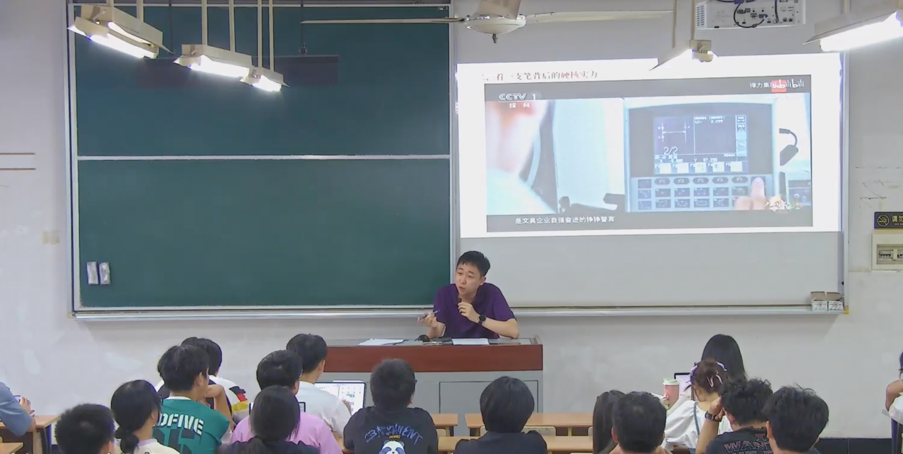 (许晋慆老师讲述推动经济高质量发展案例) 宁海县西店镇发展服务办统计工作专员、宁海县“缑火”青年宣讲团成员许晋慆老师讲述了宁海县手电筒产业和得力文具的转型升级的案例。从西店镇手电筒企业家包机参加广交会打开国际市场,到得力集团从文具制造商转型为科创型企业并掌握核心技术,再到光伏产业的迅猛发展,宁海县在工业领域的每一步都充满了勇气和智慧。许老师呼吁“我们要全面贯彻落实党的二十届三中全会精神,创新实干、革新攀高,续写全面深化改革新篇章,奋力走好中国式现代化县域先行之路。” 本次课堂不仅让同学们深刻领略了宁海县在中国式现代化进程中的卓越贡献,更激发了大家对于改革创新、文化传承与绿色发展的深刻思考。刘盼红老师指出,《习近平新时代中国特色社会主义思想概论》课程是一门极为重要的思想政治理论课,理论离不开实践,乡村导师进课堂让鲜活的实践走进同学之间,跨越了时空,让同学们更加深入理解习近平新时代中国特色社会主义思想的伟力。冯炳赫同学课后感慨道,这是一堂与众不同的思政课,今后自己也要努力将所学知识用于乡村振兴。同学们纷纷表示乡村导师带来了真实震撼的课堂体验,他们将勇担时代使命,为实现中华民族伟大复兴的中国梦贡献青春力量。 东华大学马克思主义学院全面贯彻落实党的二十届三中全会精神,深化教育综合改革,积极推进大中小学思政课一体化,把思政小课堂同社会大课堂有机结合起来。近年来,东华马院与浙江省宁海县合力推进大思政课建设,涵盖了经济发展、文化传承、基层治理、乡村振兴等中国式现代化建设的诸多重要领域。校地双向奔赴、大学教师与乡村导师双向出场,东华马院探索出了一条思政育人的新路子,也彰显了大思政课建设的样本效应。 |