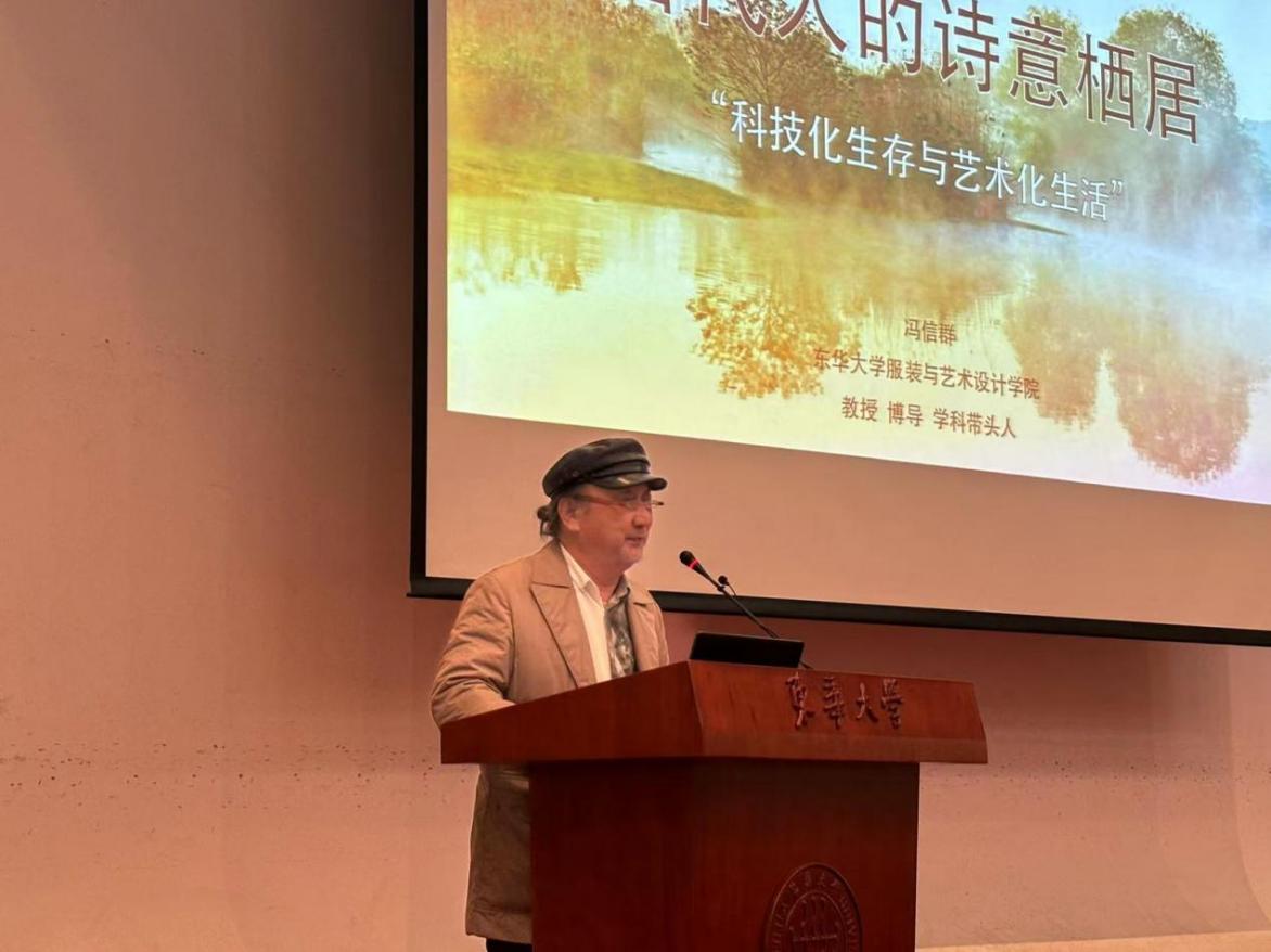 我们会在仰望闪烁霓虹时追忆年幼星空的净澈与美好,也会在身处高楼大厦间怀恋农家小院的生动与温暖,不禁自问何处是精神故乡?当今工业化的高度发展、科技进步的突飞猛进确实为我们的生活带来了诸多便利的同时,又隐匿着另一种忧虑——人本身生存状态的同质化、模式化问题。12月5日,服装与艺术设计学院博士生导师、学科带头人,全国艺术专业学位研究生教育指导委员会委员冯信群教授以“当代人的诗意栖居:科技化生存与艺术化生活”为题主讲《锦绣中国》,将他的亲身体验和学术研究作为“原料”,向同学们深入讲述对于科技与艺术问题的思考。