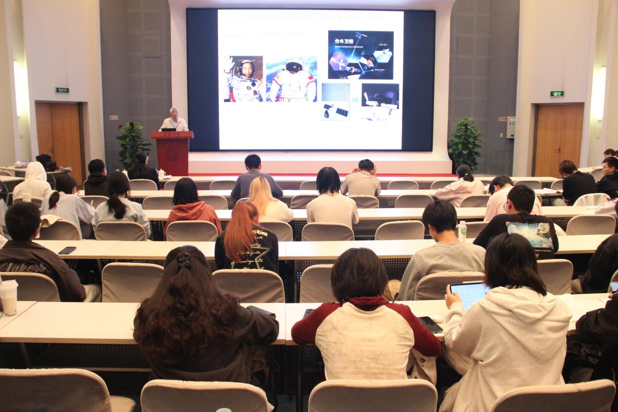 郁崇文教授首先从桑麻的历史起源讲起,指出麻作为中国最古老的纺织原料之一,有着6000多年的发展历史,与丝绸共同构成了中华纺织文明的核心载体。他指出,“桑麻”不仅是古代物质生产和经济发展的重要内容,而是深度融入到人们的文化生活,成为承载农业文明与纺织文化的重要符号,从《诗经》到乐府诗,从唐诗到宋词,将中国麻纺织的悠久历史娓娓道来,让同学们领略到桑麻文化的源远流长与博大精深。他还从专业的角度,系统梳理了麻纺织技术与功能应用,深入介绍了大麻、苎麻、亚麻、罗布麻等主要麻类品种的特性与加工工艺,随着技术进步,现代麻纺织已突破传统服装领域,广泛应用于航天航空、汽车制造、医疗健康、建筑防护等产业用纺织品领域,成为仅次于金属、水泥、塑料的第四大工程材料。 “锦绣中国”谁织出,麻纺织技术的开发应用离不开广大科学家的辛勤努力。郁崇文教授深切讲述麻纤维专家酆云鹤情系云丝的传奇故事,以及她谨奉“我是中国人”的家国情怀,回顾她为中国麻行业的发展做出了卓越的贡献。身在纺织行业特色高校,他特别提及东华大学钱宝钧老校长——作为我国纺织材料学科的奠基人,讲述钱老“严谨治学、实业报国”的精神,为纺织学科的科研创新与人才培养筑牢了坚实基础,以此勉励东华学子刻苦学习、勇于创新,践行老一辈科学家的钻研精神。